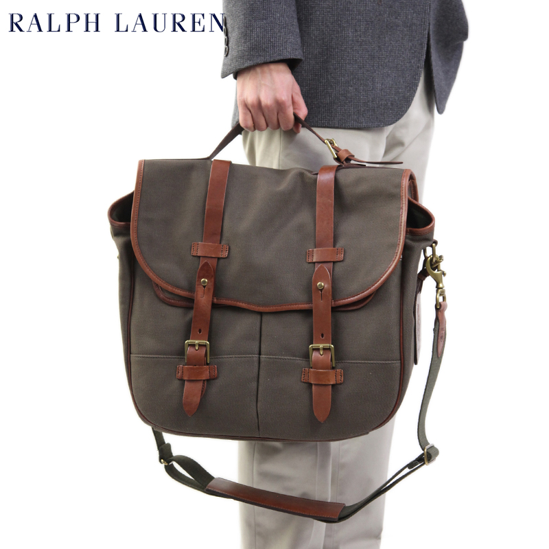ラルフローレン『Ralph Lauren』の、ツイル&レザーショルダーバッグです。 ビンテージ加工が施されたヘビーオンスのコットンツイルと、レザーのトリミングとレザーハンドルがオシャレですね。 ショルダーストラップ付きで、取り外せばブリーフケースとしても使えますよ!