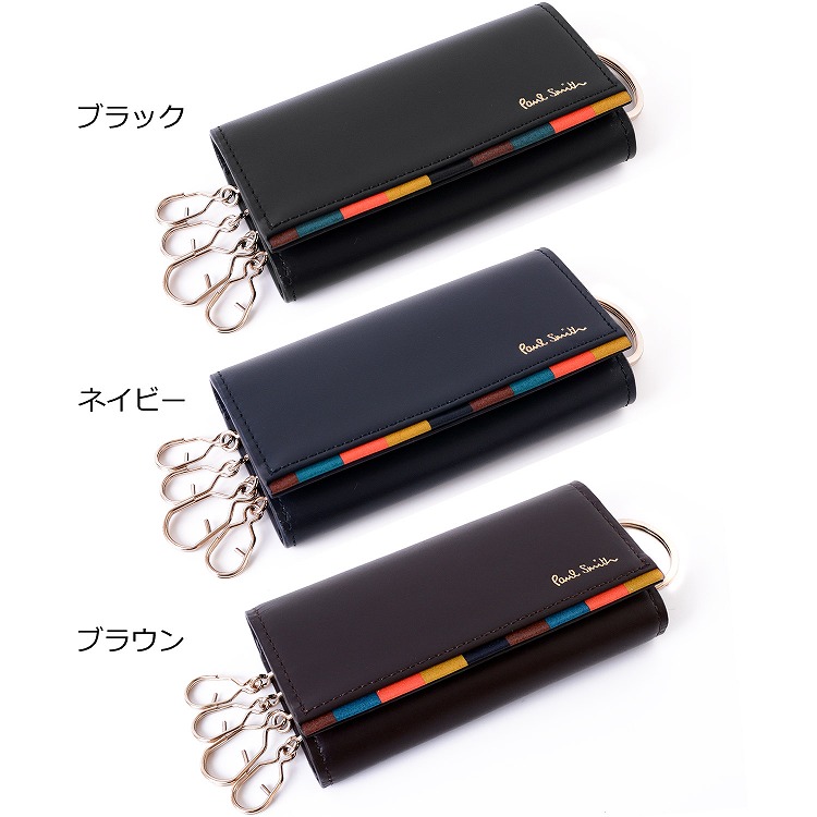 ポールスミスのオシャレで可愛いらしいキーケースです。 ストライプトリムが上品にも見えますね。 大人の可愛らしさが感じられます。 誕生日プレゼントでもらったら、うれしいでしょうね!