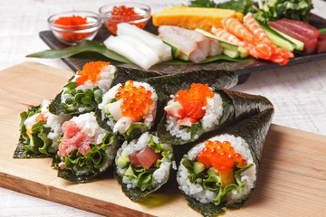 手巻き寿司も見た目も豪勢、結婚記念日やイベントに使える簡単料理です。 ご飯を硬めに炊き、お寿司ご飯を作ります。 手巻き寿司の具にはどんなものを用意すれば良いでしょうか。 マグロやサーモン、鯛やカツオなど新鮮な魚介類。 スモークサーモンとクリームチーズの組み合わせも美味しいです。 厚切り塩豚とユズ胡椒やロースとビーフなどもちょっと変わった感じでいいですね。 子供がいる場合には、甘い卵焼きや肉そぼろ、デンプなども忘れないようにしましょう。 皆で海苔を片手に好きなものを乗せていく、簡単だけど全員で楽しめる、賑やかな結婚記念日になります。