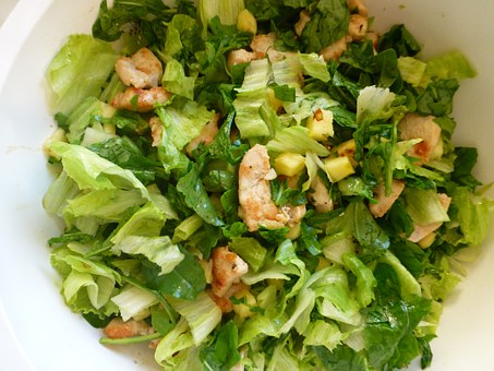 サラダはレタス、サラダ菜などその季節季節に合った野菜で作ります。 チキンは胸肉に塩コショウをして、お酒を振り1-2時間おき、電子レンジでチン。 火が通ったら、細かく裂きゴマのドレッシングで合えます。 サラダの上に乗せて頂きます。