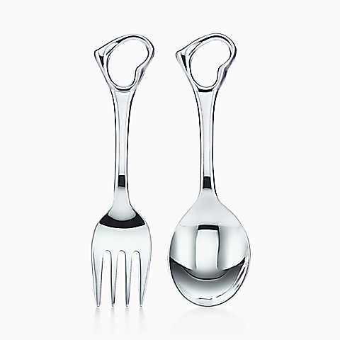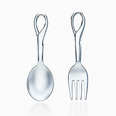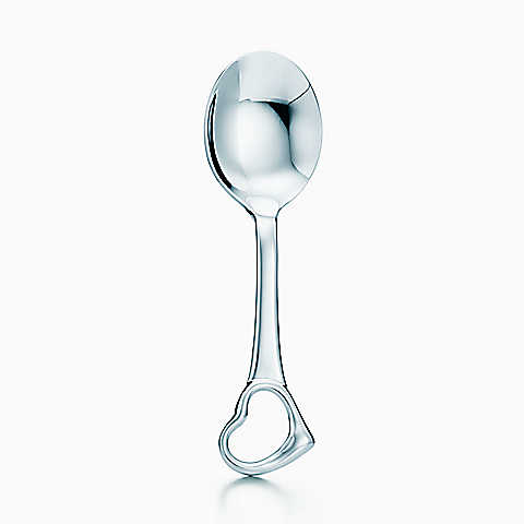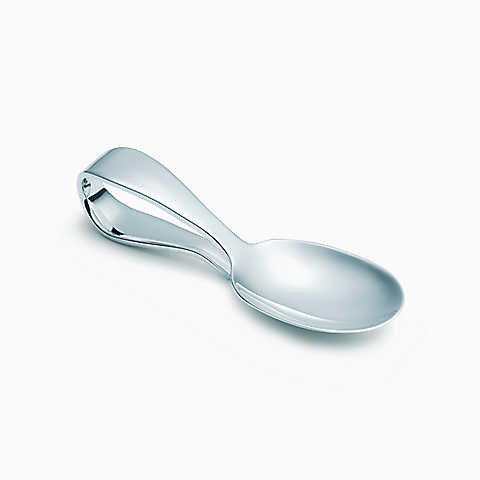 ティファニーを代表するコレクション、オープンハートのベビースプーンです。 愛することへの祝福の意味が込められたデザインのオープンハートは、出産祝いにもピッタリですね。 長さは約11cmで、こちらも赤ちゃんが持ちやすく使いやすいスプーンです。 ループベビースプーンよりはちょっと長めなので、離乳食から幼児期まで長く使ってもらう事が出来ます。 素材:スターリングシルバー 価格:21,600円