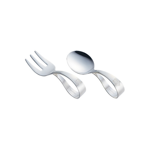 先に紹介したオープンハートデザインのスプーンとフォークのセットです。 フォークとセットだったら、赤ちゃんのお食事のときも更に活躍してくれますね。 もちろん記念として飾ってもらう事も出来ます。 素材:スターリングシルバー 価格:35,640円