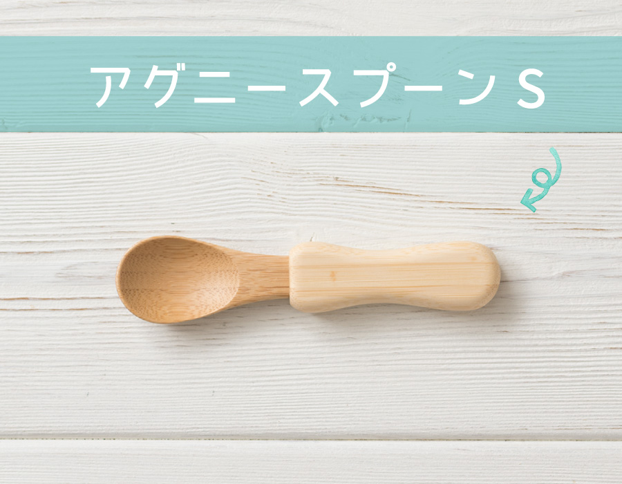 竹製の軽くて握りやすいベビースプーンです。 カラーはクリームとブラウンの2カラー揃っていて、名前を入れてプレゼントする事も出来ます。 アグニーでは竹製のプレートやお椀、カップなども扱っているので、セットでプレゼントしてもおすすめです。 価格:名前なし:972円 名前入り:1,404円