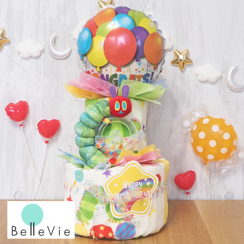 はらぺこあおむしのおむつケーキと絵本が一緒に贈れる、お得な出産祝いです。 付いてくる絵本は「どこでもソフトブック」で、赤ちゃんが触って楽しめるアイテムです。 これとリングラトル、ベビーカーなどに取り付けられるチャイムトイ、ミニバスタオルが付いてくるのでとっても豪華! おむつはパンパースのSサイズが40枚、Mサイズが35枚、Lサイズが30枚付いてきます。