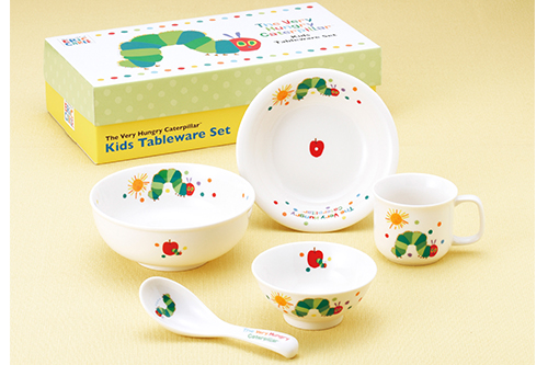 はらぺこあおむしの食器ギフトは、子どもが喜ぶかわいいあおむし柄のテーブルウェアです。 茶碗、マグ、フルーツ皿にラーメン丼、メレンゲがセットになっています。 しっかりとした磁器製の食器なので壊れにくく、レンジも使えるので便利です。 食器系は必ず使うものなので、出産祝いにはかなり喜ばれます。