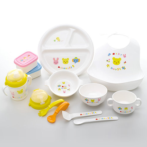 これがあれば、赤ちゃんのお食事関係は完璧! プレートからマグカップなど幅広い使い方ができる優れものがずらり。 優しい動物のイラストは、男の子でも女の子でも使えるミキハウスの日本製です。