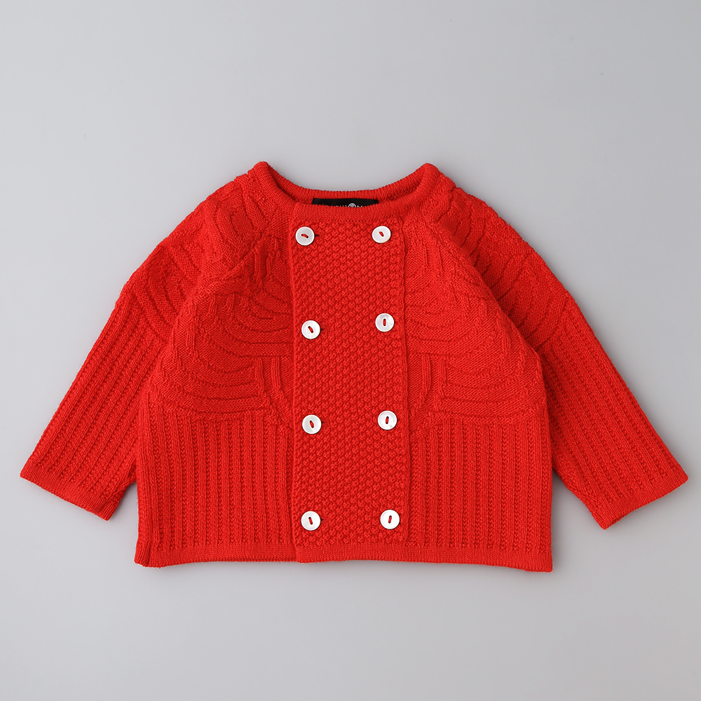 カーディガンは便利だけど、ニットとなると重かったり、チクチクするのではないかという心配もありますね。 高島屋のベビー用カーディガンはキュアテックス社の和紙とウールを混合して作られた柔らか素材でできています。 直線と円を組みあわせた「高橋理子」氏のオリジナルデザインです。
