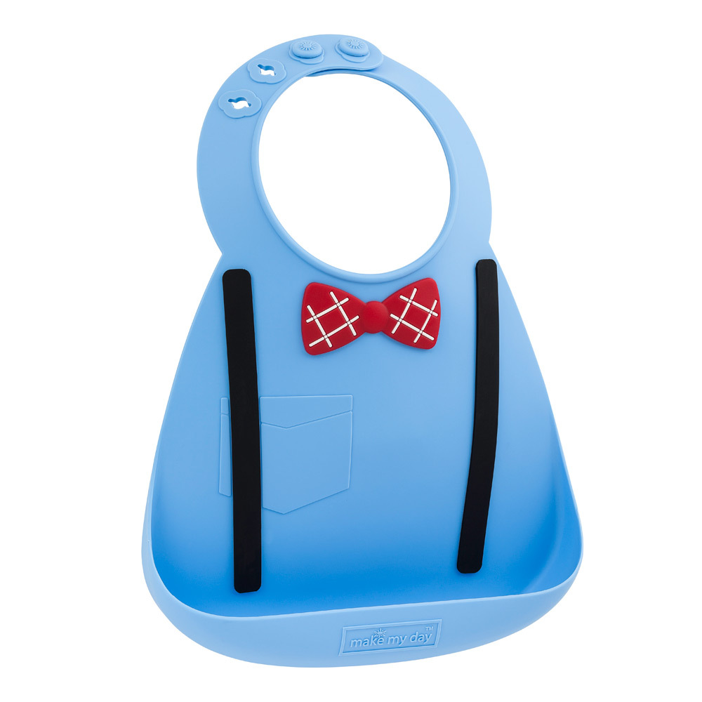 お食事時の必須アイテム、シリコンのビブは無地の物が多いのですが、これはシャツのデザインと蝶ネクタイが可愛いですね。 四段階に調節できるので、長く使えるのがメリットです。
