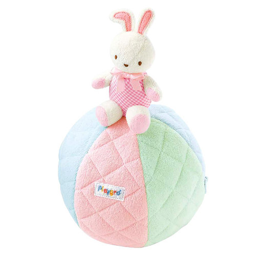 赤ちゃんが触って遊ぶおもちゃです。 転がると優しい音がして、起き上がりこぼしのようにコロンと元に戻ります。 優しいパイル地で、色合いが明るいパステルでほのぼのした感じです。
