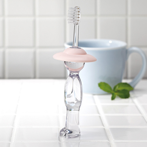歯ブラシもまだまだ先のこと。 でも早いうちから歯ブラシを持つ習慣をつけるのは大切ですね。 口に入れてしまいすぎないように、ガード付きの安心歯ブラシです。