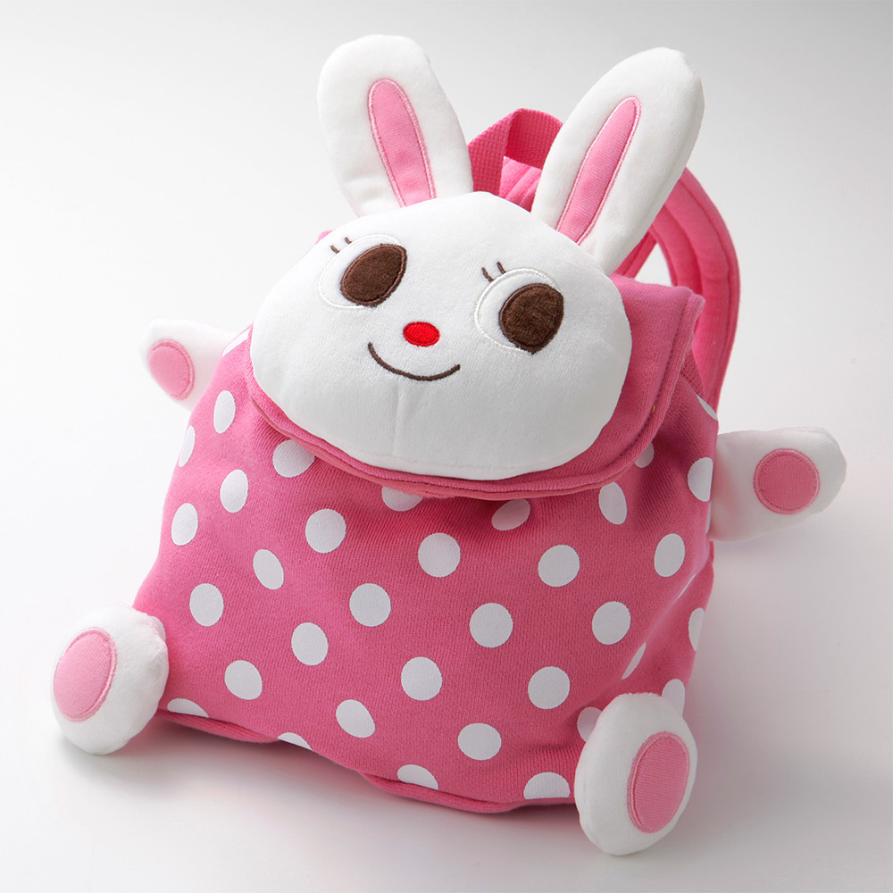 ぬいぐるみみたいなリュックサックは女の子にぴったり。 おむつやタオルなど柔らかいものを入れておけば、ゴロンとひっくり返った時にも、頭や背中を守ってくれるので安心ですね。