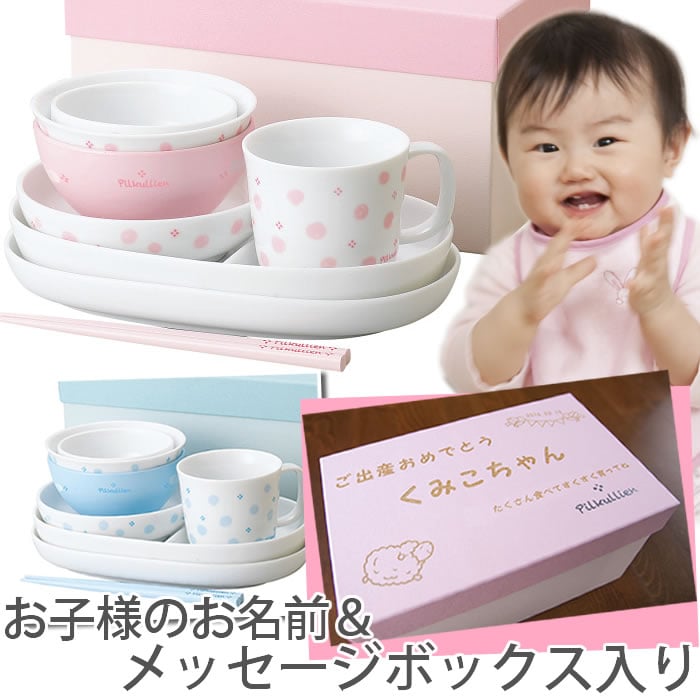 あまりにも食器が増えると「置き場所をどうしよう」と困ってしまったりもしますが。 こちらの食器セットは、重ねて片づけることができます。 メッセージボックスにはおめでとうのメッセージと名前が入れられるので、出産祝いにピッタリですよね♪