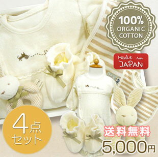 日本製のオーガニックコットンのベビー服です。 2WAYオール、スタイ、ガラガラ、ブーティとセットになっています。 うさぎ(ベージュ)とくま(グリーン)から選べます♪ どちらも可愛くて迷ってしまいますよね。