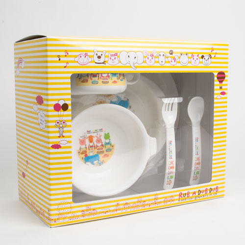 UB A DUB DUB(ラブアダブダブ)のベビー食器セットです。 仕切りプレート、ベビープレート、スープカップ、マグ、スプーン&フォークの5点セットとなっています。 食器洗浄機や電子レンジがOKなのが、使いやすくていいですよね♪