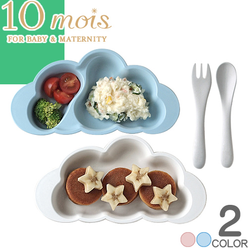 日本製ベビーブランド「10mois(ディモワ)」の食器セットです。 とっても可愛い形のお皿にスプーンとフォークがセットになっていて、離乳食初期から幼児期まで、長く使用できるのが嬉しいです♪ カラーはピンクとブルーの2色あります。