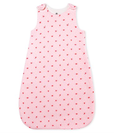 リブ編みのジゴトゥース『スリーパー』は、中綿入りでとっても暖かい商品です。 布団のように、はだける心配がないので、お母さんも安心ですね! フラワープリントが可愛らしく、色違いも用意しています。 背中のスナップボタンで長さが調節できるので、成長にあわせて長く使える1品です。
