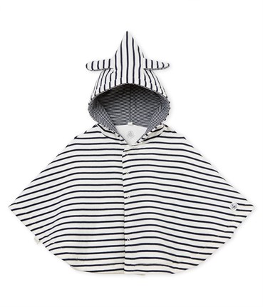 マリニエールボーダーはプチバトーの代表作品ですね! その素晴らしいデザインと、プチバトー独特の1×1リブ編み素材のキルティングが『第二の肌』と呼ばれるやわらかな肌触りを実感できます。 耳付きのフードが、とっても可愛らしいですね。