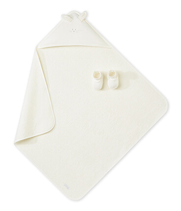 アフガンは、三角コーナーに頭をいれて身体をくるむ、お風呂上がりの必需品です! そのまま身体を拭いてあげれば湯冷めの心配もありません。 ウサギの耳と顔がとってもかわいい、シューズもついたセットです。 これも出産祝いに喜ばれそうですね!