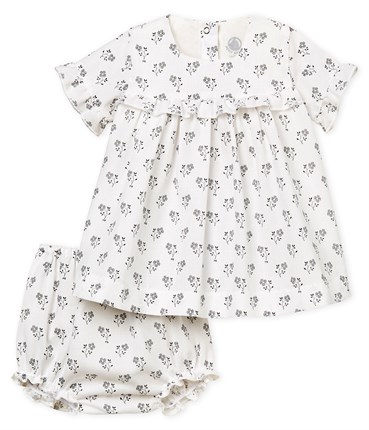 コットンポプリン素材を使用したワンピースとブルマのセットです! フラワープリントが可愛く、女の子らしい商品です。 セットで着ても、ほかのアイテムと合わせて別々で使うこともできますね。 上下のセットは、出産祝いのギフトにもってこいです!