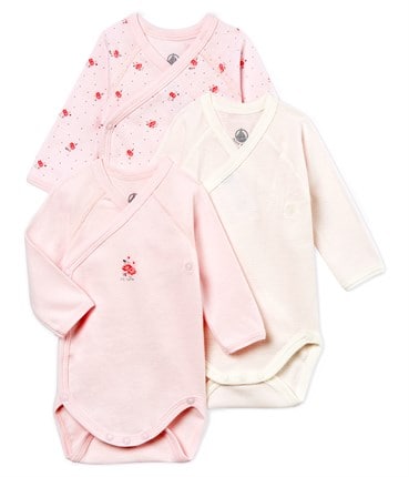 リブ編み素材の長袖あわせボディーアウターです。 あわせタイプなので、生まれたての赤ちゃんにも安心して着せられます。 それぞれ印象の違う3枚をセットにした商品です。 プチバトーの肌着は、出産祝いに最高ですね!