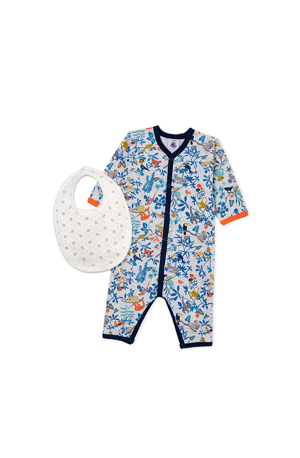 男の子にぴったりなジャングルプリントのロンパースと、かわいいスタイのセットです! シンプルなスタイはどんな服にも合わせやすくなっています。。 プチバトーのロンパースは着心地も良く本当に便利なので、ひとつは持っておきたいですね!