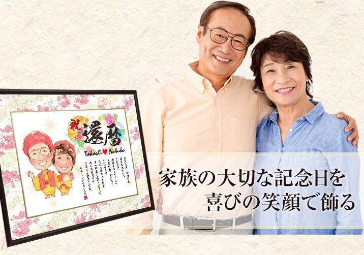 素敵な似顔絵と、周りには友禅紙の華やかなさが添えられたメッセージボードです。 家族の特別な日をいつでも感じられる形に残る素敵なプレゼント! プレゼント相手の気持ちをそのまま伝えるため、メッセージも完全にオリジナル指定が可能なのもポイント! サプライズプレゼントでびっくりさせちゃいましょう。