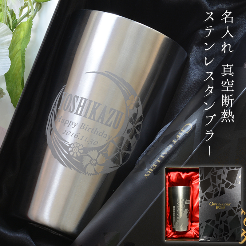 真空断熱のステンレスタンブラーに名前とメッセージが入れられるプレゼントです! 結露が発生せず、熱い飲み物も冷たい飲み物も長時間温度をキープできる優れもの! 特に普段晩酌をされる人には最高のお共になってくれます。 メッセージは好きなものを入れられるので、あなたの気持ちもきっと伝わるはずです。