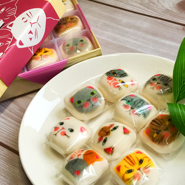 いろいろな猫の顔が描かれた、かわいらしい和風マシュマロです。 和風マシュマロは、正確には鳳瑞(ほうずい)といい、伝統的な和菓子の一種。 猫好きの方に贈るのはもちろん、外国から来た方へのプレゼントにするのも良さそうですね。
