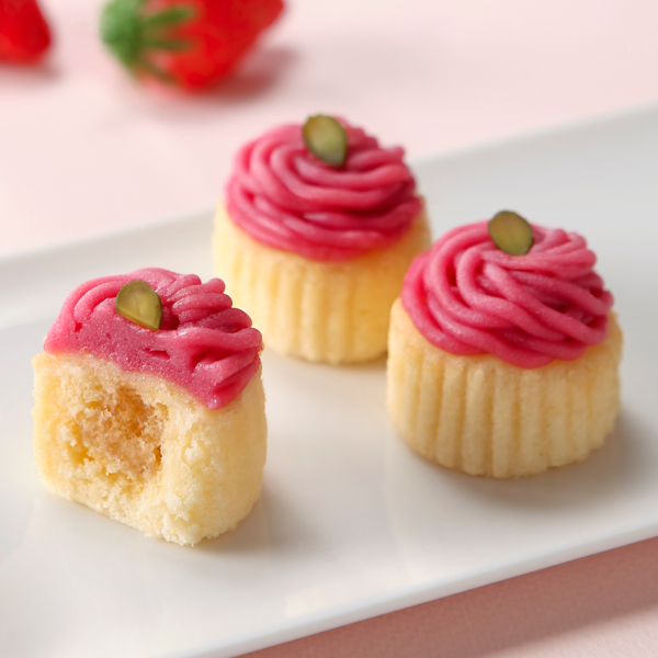 お花のお菓子!?と一目見てはっとするようなかわいらしいお菓子。 その正体は、いちごのあんが乗った焼モンブランです。 これはぜひとも一口食べる前に写真を撮ってほしいところ。 写真映えにこだわる方に、ぜひプレゼントしてあげましょう。