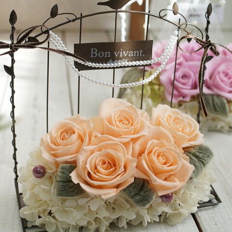 結婚式のウェディングアイテムで使う事が出来、受付にウェルカムフラワーとして置けます。 ウエディングカラーのやさしい色合いのホワイトベージュのカラーと、やさしいピンクをベースとした2色から選べます。 結婚式が終われば、そのまま新居で飾れて、お部屋を華やかに演出します。