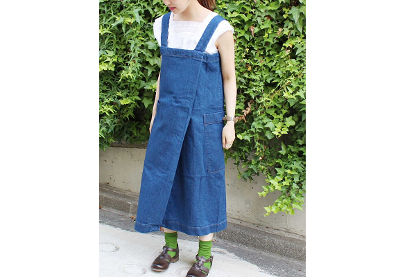「yuni ムラ糸デニム エプロンワンピース」は後ろもすっぽり隠れるので、スカートなどのボトム無しでも着られる便利なアイテム。 Tシャツにこのエプロンワンピースをサッと着ればコーデが完成するのでとっても楽なんです。 シンプルなデザインなので、大切に長く着てもらえそうですね。