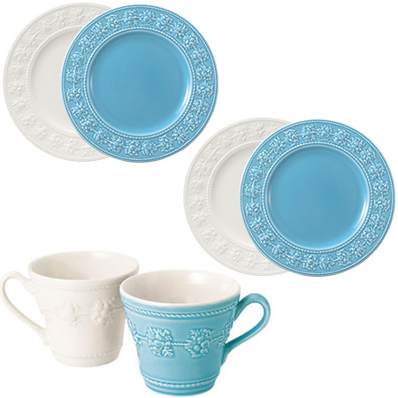 ホワイトとブルーが鮮やかな食器セットです。 普段使いしやすいデザインに、凸凹の付いたこなれたデザインで、実用性は抜群です。 もちろん食洗器にも入れられるので、結婚祝いに喜ばれるギフトセットです。