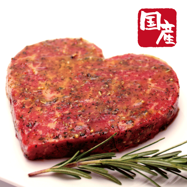 こちらはビッグなハートのステーキです。 なんと250gとボリューミーなので、夫婦でシェアして楽しんでもらいましょう! 味付きのステーキなので、味付けに不安な人でも安心してお肉の味を楽しめます。