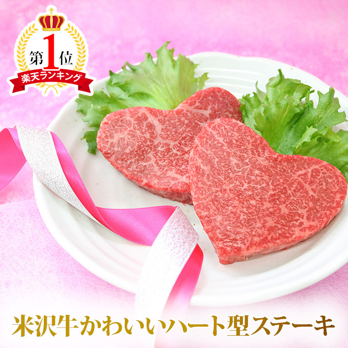 こちらは米沢牛のハート型ステーキです。 ハートのステーキには、赤身肉のしっかりとした弾力と程よく入ったサシの甘みが特徴のモモ肉を使用しているので、霜降りが苦手な人にも食べやすくなっています!