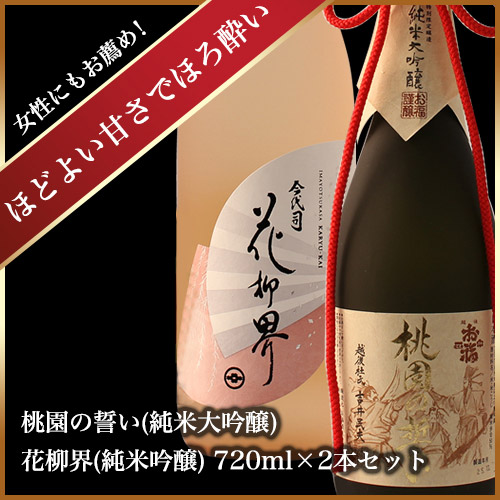 花柳界は日本酒度-51の大甘口、桃園の誓いは+5.0の辛口です。 どちらも個性ある日本酒なので、旦那様と奥様の好みが違う場合でも一緒に日本酒を楽しんでいただけます。 華やかでおめでたい名前がついたお酒なので、結婚祝いにもぴったり! 専用の化粧箱も高級感があるので、ご夫婦に喜んでもらえること間違いなしです。