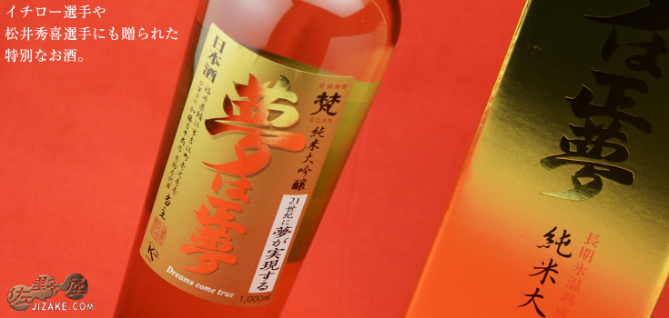 日本酒度+2:やや辛口 しっとりとなめらかな舌触りとキレのある後味が特徴。 野球選手のイチローや松井秀喜にも贈られたことのある成功を祈る特別な名酒です。 冷酒で飲むのがオススメ