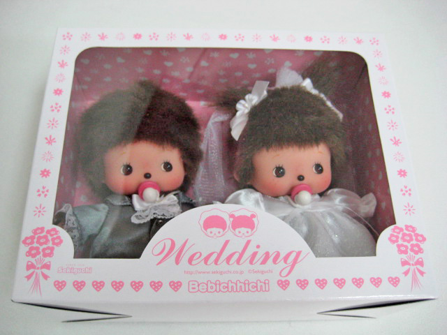 おしゃぶりがキュートで可愛い、ベビチッチのウェディングドールです! 花婿と花嫁の衣装を身に付けたベビチッチに、幸せムードと可愛らしさがが倍増ですね。 箱に入れて飾れますし、人形自体の高さは25cmもないので、置き場所もいろいろです。 ご結婚のお祝いに、『幸せモンチッチ』をプレゼントしてはいかがですか?