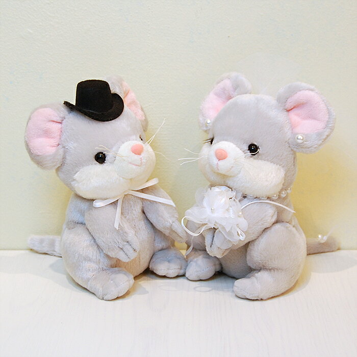 男の子の『ジェントルマンマウス』くんと、女の子の『ウェディングドレスマウス』ちゃんのウエディングギフトセットです。 この可愛い二匹が、幸せなお二人や周りの大切な方々にも 幸せを運んでくれるはず! 男の子も女の子も20cmくらいのかわいいサイズなので、置く場所にも困りません。 見つめ合う二匹の眼差しがとっても愛らしいです。 結婚祝いで贈ったら、きっと喜んで飾ってくれますよ!