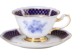 1919年の創業以来、美術的価値も高い最高級の洋食器を作り続けている「大倉陶園」のティーカップです。 華麗なブーケと美しいシェイプが特徴の「ブルーインペリアル」シリーズのティーカップで、独特の深みのある紺青のバラのブーケはとても高貴で、優雅なティータイムが楽しめます。 価格:27,000円 (税込)