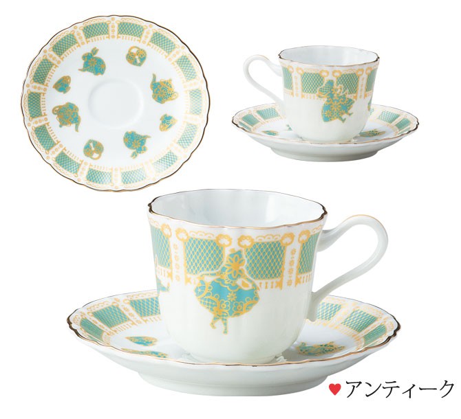 不思議の国のアリスの世界観がたっぷりの、こちらも甘すぎないおしゃれなティーカップです♡ アリスらしい不思議なデザインと色使いがティーカップ からも伝わってきます。 キーホール・懐中時計・アンティーク・ハートの女王・レース・フローラルの6種類から選べます。(写真:アンティーク)
