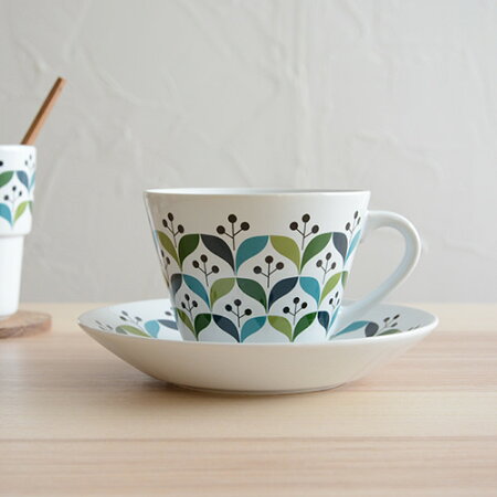 グスタフスベリを代表する、木の葉モチーフのおしゃれなティーカップです。 清潔感のあるシンプルなお部屋にぴったりのさわやかな印象。 葉脈までくっきり描かれているのが特徴で、ボーンチャイナのホワイトにグリーンが映えるとてもすっきりした印象のカップです。 価格:19,440円(税込)