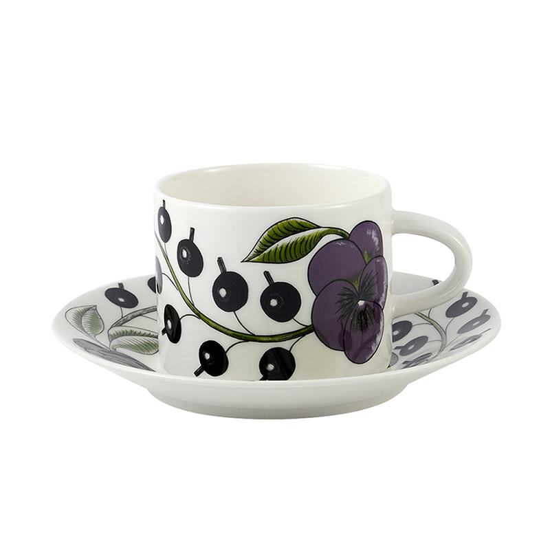 北欧デザインの日本でも高い人気を誇るテーブルウェアブランド、「アラビア」のティーカップです。 こちらはアラビアの人気シリーズ「パープルパラティッシ」のカップ&ソーサーで、パープルとグリーンのコントラストがとてもおしゃれです。 パラティッシシリーズの中でも特に人気のカラーです。 価格:9,180円(税込)