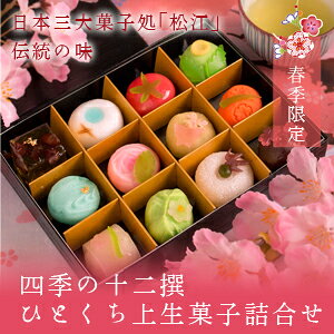 島根県松江市に大正2年に開業した老舗和菓子店の「福田屋」。 その春季限定の和菓子の詰め合わせです。 日本人女性なら誰がみてもこの和菓子のかわいらしさ、彩りのすばらしさにうっとりしてしまう、そんなひとくちサイズの上生菓子が12個入っています。 和菓子ならではのこの彩は見る人を虜にしますよね。 楽天でも人気と評価の高い商品です。