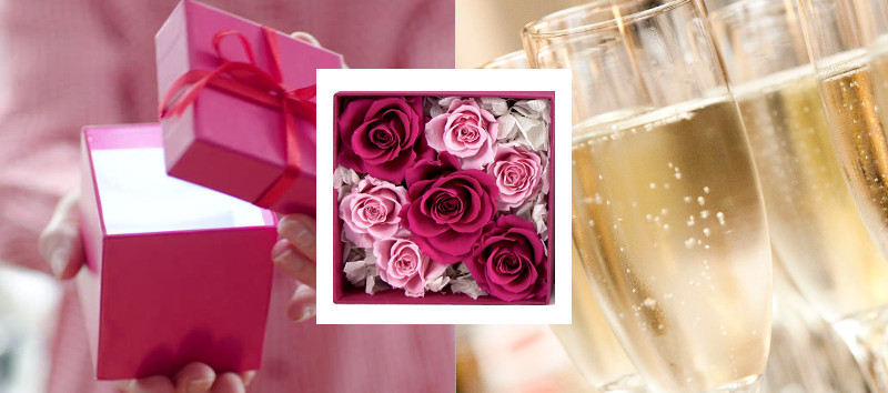 母の日のプレゼントにボックスに入った、赤とピンクのバラのプリザードフラワーのセットです。 ボックスに入った花はそのまま、インテリアとして飾ることも出来、思い出に残る母の日になります。 世界でも有名な料理店、マキシム・ド・パリのシャンパンは、クリーミーな泡で花やハチミツの香りがします。 お母様と特別な1日が過ごせそうですね。
