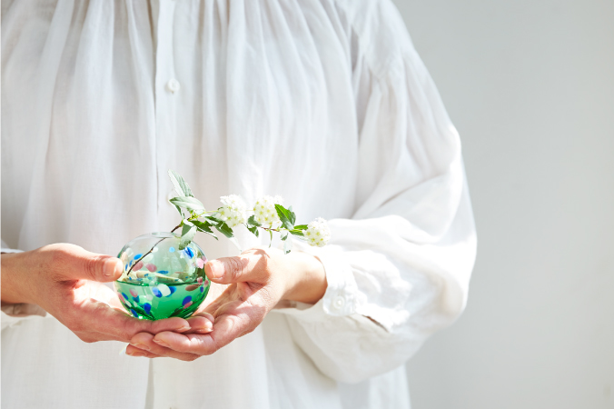 こちらは青森県のブランドで、日本ならではの四季折々の感情を表現した花瓶が豊富。 日本の景色をイメージした物が多く、花瓶は口径がフリル状に広がっているのが最大の特徴です。 そのため、広がりやすい花を生け花にしたい人に向いているブランドといえます。 大ぶりなサイズの花を活けるときにもいいですね。 和と洋、どちらのお部屋にも合わせやすいですよ。 もちろんガラスの表面に名入れすることもでき、メッセージを伝えやすいのも嬉しいところ。