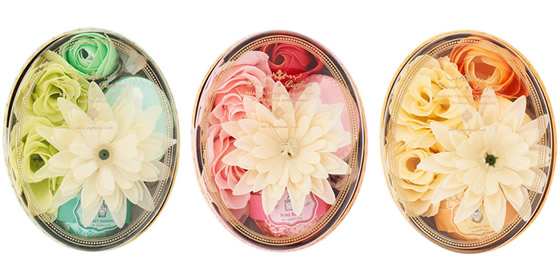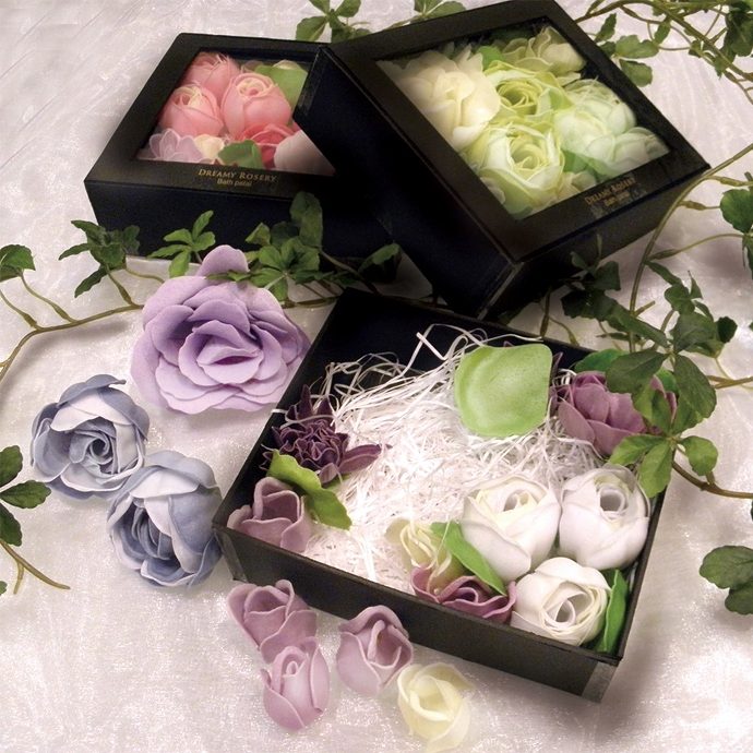 本物そっくりのお花は、飾っておいても十分に素敵ですね。 それぞれ、薔薇をイメージとした香りで、贅沢なバスタイムを演出してくれそうです。