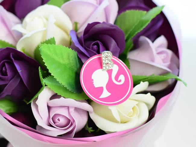 こちらもケイコレクションのバスフレグランスソープ。 バービーのタグと「B」のチャームがついています。 色は、ピンク・レッド・ブルー・パープル・オレンジ・ワインの6色から選べます。 ファッションドールのバービーの世界観を表現したバービーローズブーケです。