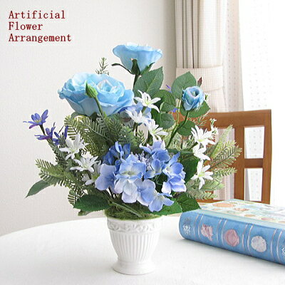 ブルーローズにアジサイ、アスターなどを組み合わせたさわやかなイメージの、ブルーを基調とした造花アレンジです。 青色が大好きなお母さんにおすすめ♡ クオリティも高く、白の陶器に入ってとても涼しげな印象です。