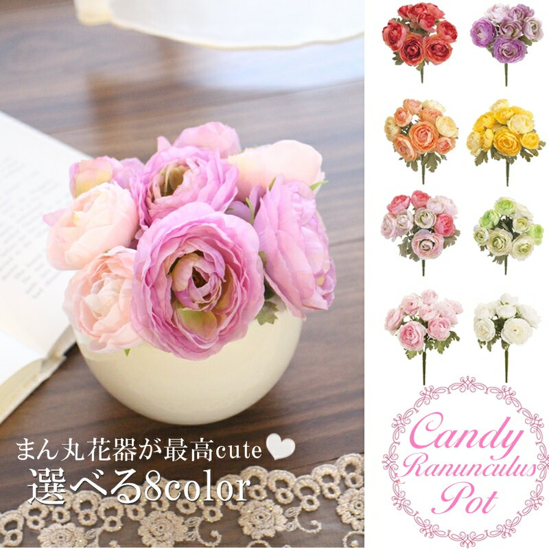 可愛いラナンキュラスの造花が、コロンとしたまん丸の花器にアレンジされたとってもかわいくてキュートな造花です。 カラーバリエーションも全8カラーと豊富に揃っていて、コンパクトなサイズなので洗面台や玄関などあまりスペースが取れないところにも飾ってもらう事も出来ます♪