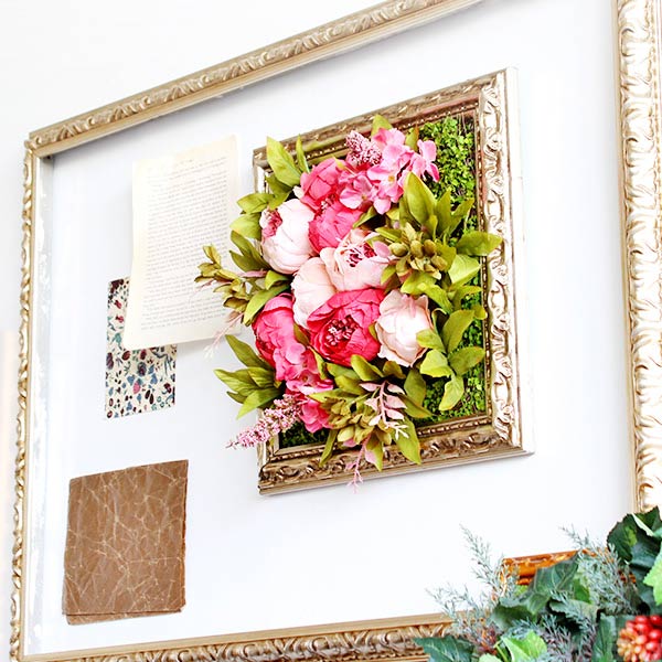 アンティーク調のフレームに造花をアレンジした、壁掛けタイプのアートパネルです。 様々な種類のグリーンが組み合わせてあるので、とても爽やかなイメージですよ。 立体感のあるデザインで光触媒加工が施されているので、お部屋に飾っておくだけで空気清浄、消臭効果も期待出来ます♪